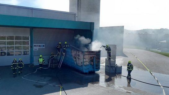 Durch einen gezielten Löschangriff unter schwerem Atemschutz gelang es, das Feuer einzudämmen und ein Übergreifen der Flammen auf die Produktionshalle zu verhindern. Im Anschluss wurde der Container mit Schaummittel geflutet.
